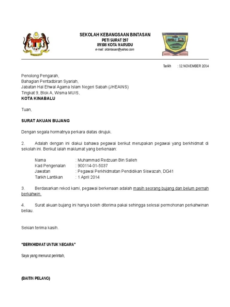 Kumpulan contoh surat akuan bujang daripada.